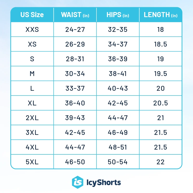Icy Shorts fits true to size, offering a comfortable and relaxed fit. We recommend you select your regular size.